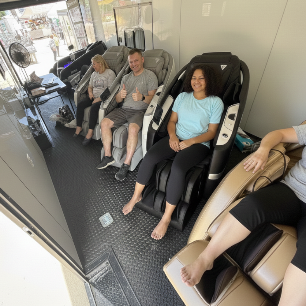 The Floridian Brand Mobile Showroom is a fully mobile massage chair experience designed to bring premium wellness directly to your location. Built for convenience, impact, and engagement, this rolling showroom allows guests to experience multiple massage chair models in a professional, controlled environment—anywhere your event takes place.